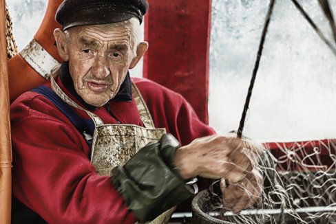 Die Künstlerin Iwona Knorr und der Künstler Luger Orlok sprechen gemeinsam mit Fischern aus der Region über Ungewissheiten - ein Sturmgespräch zum Ende der Ausstellung.