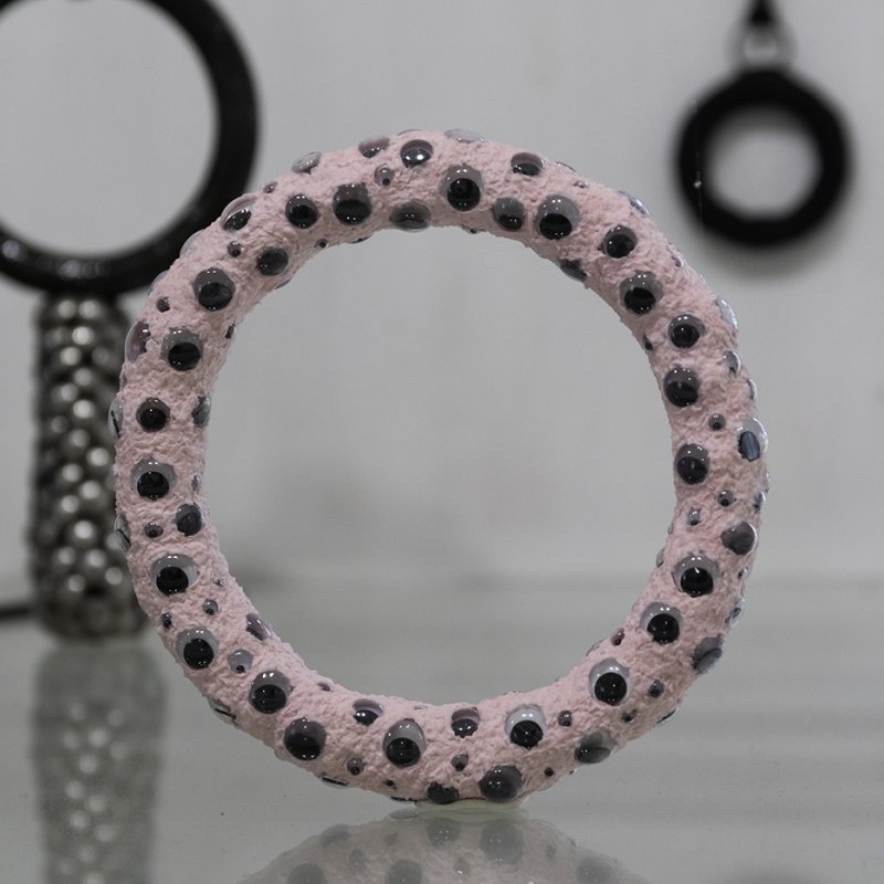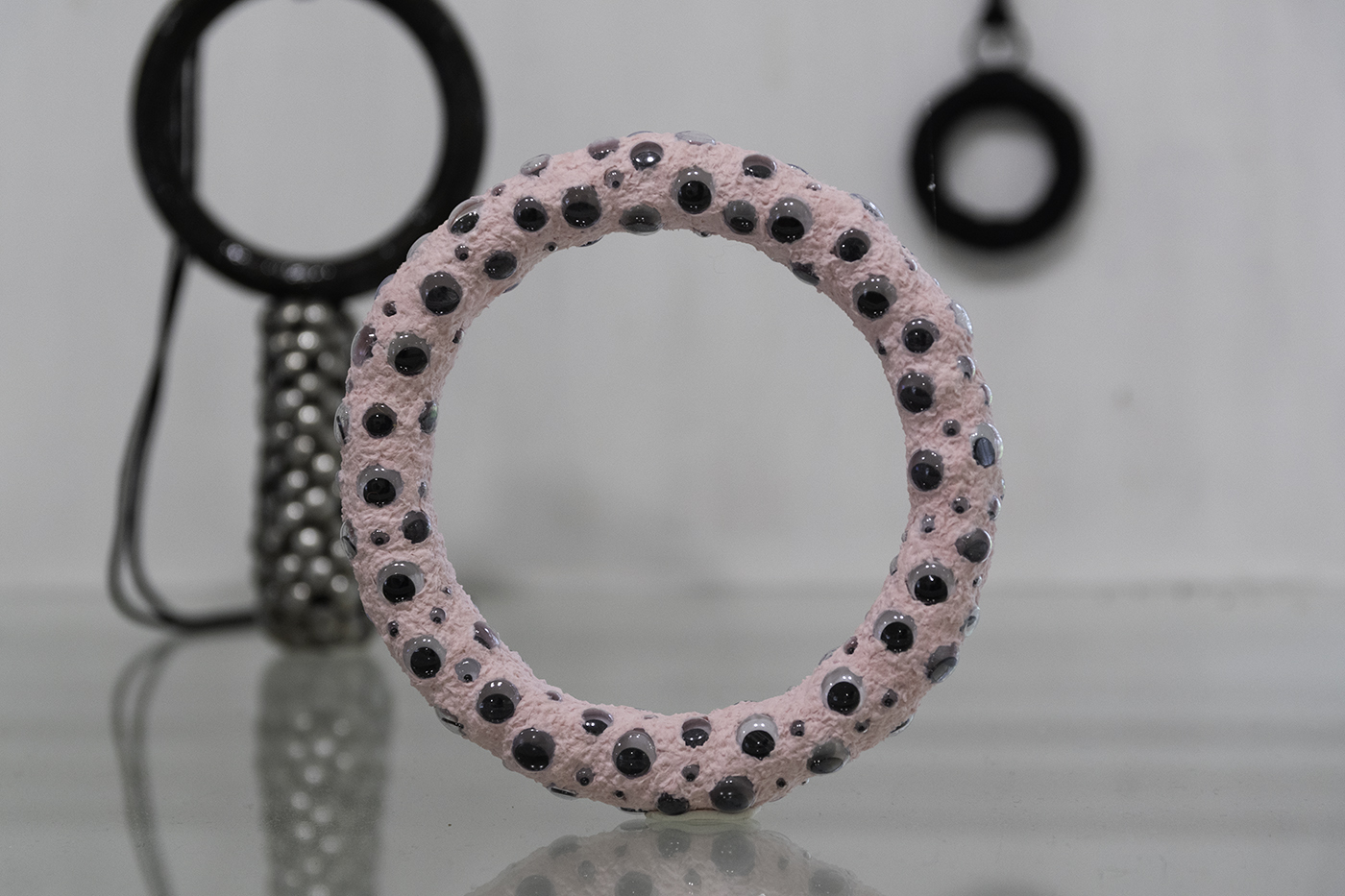 Sarah Schuschkleb (1985, Stipendium im Künstlerhaus Lukas 2020) arbeitet an der Schnittstelle von Schmuck, Kleinplastik und Objektkunst. Ihre Stücke entstehen im Dialog mit dem Körper – als Träger, Resonanzraum und Gegenüber. Schmuck begreift sie nicht als bloßes Accessoire, sondern als Mittel haptischer Erfahrung und innerer Fokussierung. Ihre Arbeiten befragen das Verhältnis von Nähe und Distanz, von Innen- und Außenwahrnehmung, von emotionaler Aufladung und gesellschaftlichem Verhalten.