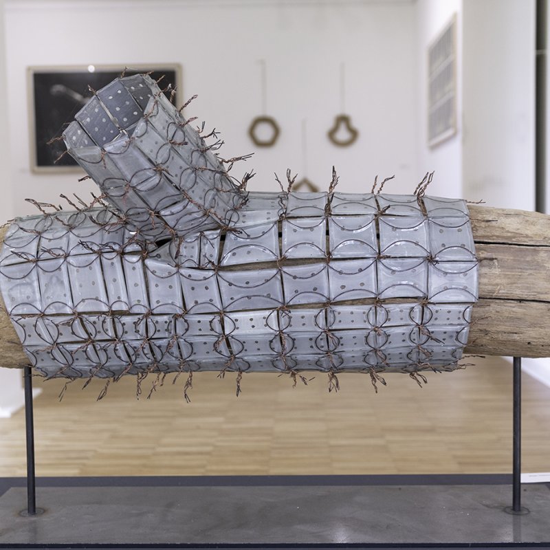 Christiane Budig (1969, Stipendium im Künstlerhaus Lukas 2024) verbindet Zeichnung, Glasobjekt und Skulptur zu Arbeiten, die aus intensiver Naturbeobachtung hervorgehen – wie etwa Frottagen von Buhnenköpfen an der Ahrenshooper Ostseeküste. Ihre Zeichnungen übersetzen reale Strukturen in imaginative Bildwelten, in denen Vertrautes und Fremdes ineinandergreifen. Auch ihre Glasarbeiten wie Schwelle (2024) thematisieren Übergänge und Spannungen – zwischen Einladung und Abgrenzung, zwischen Materialität und Bedeutung. Budigs Werke schaffen stille Räume für Nachdenklichkeit und gesellschaftliche Reflexion.