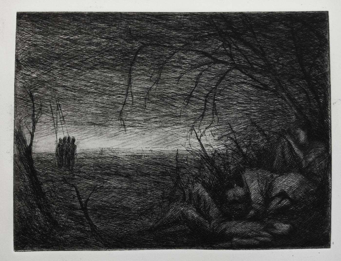 Benjamin Sasserson (*2000, Skørping, Dänemark) lebt in Odense und studiert an der Funen Art Academy. Ursprünglich in der Malerei verwurzelt, hat er sich auf Druckgrafik spezialisiert. Seine Arbeiten wurden bereits in mehreren Einzel- und Gruppenausstellungen gezeigt, darunter He Never Said a Mumbling Word (2023, FAA Project Room) und Vessels (2024, Cabin Gallery). Seine Zeichnungen und Druckgrafiken bewegen sich zwischen Dunkelheit und Leuchtkraft und schaffen dichte, atmosphärische Bildwelten, die zwischen Realität und Traum oszillieren.