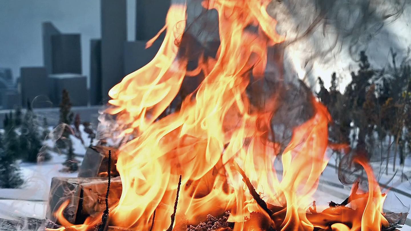 Jörg Finus, our house is ion fire, 2021, Videoinstallation
