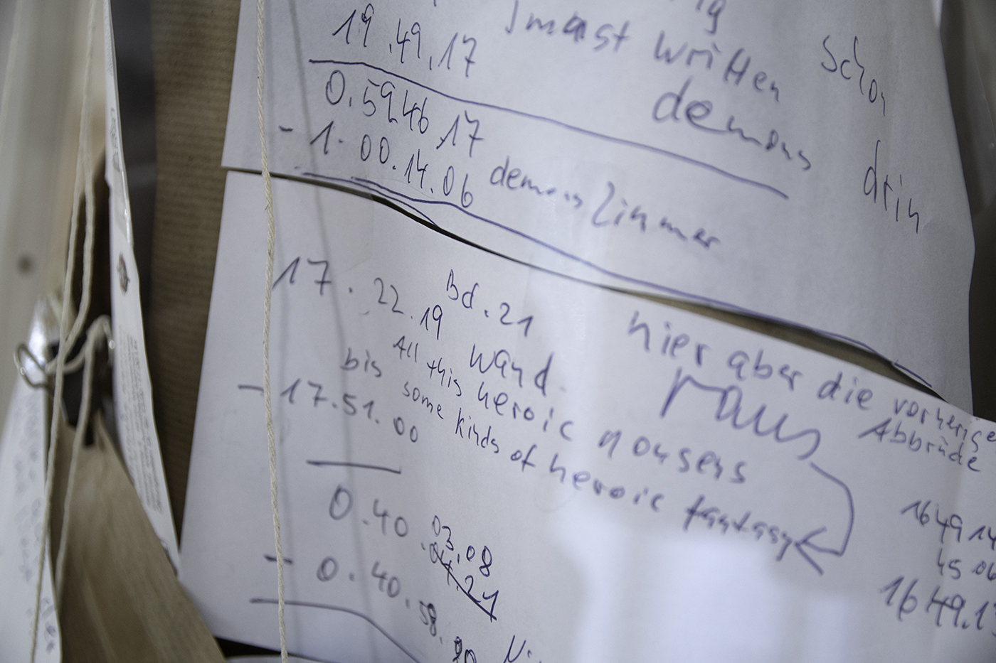 Das Archiv/Geschichte ist so kein Ort der Ablage, sondern ein Ort der Produktion. Wie ja auch Geschichte nach hinten und nach vorne zu begreifen ist, eine Bewegung, die Gegenwart produziert, jene hauchdünne Scheibe vor dem/im Auge…" – Jürgen Heiter –