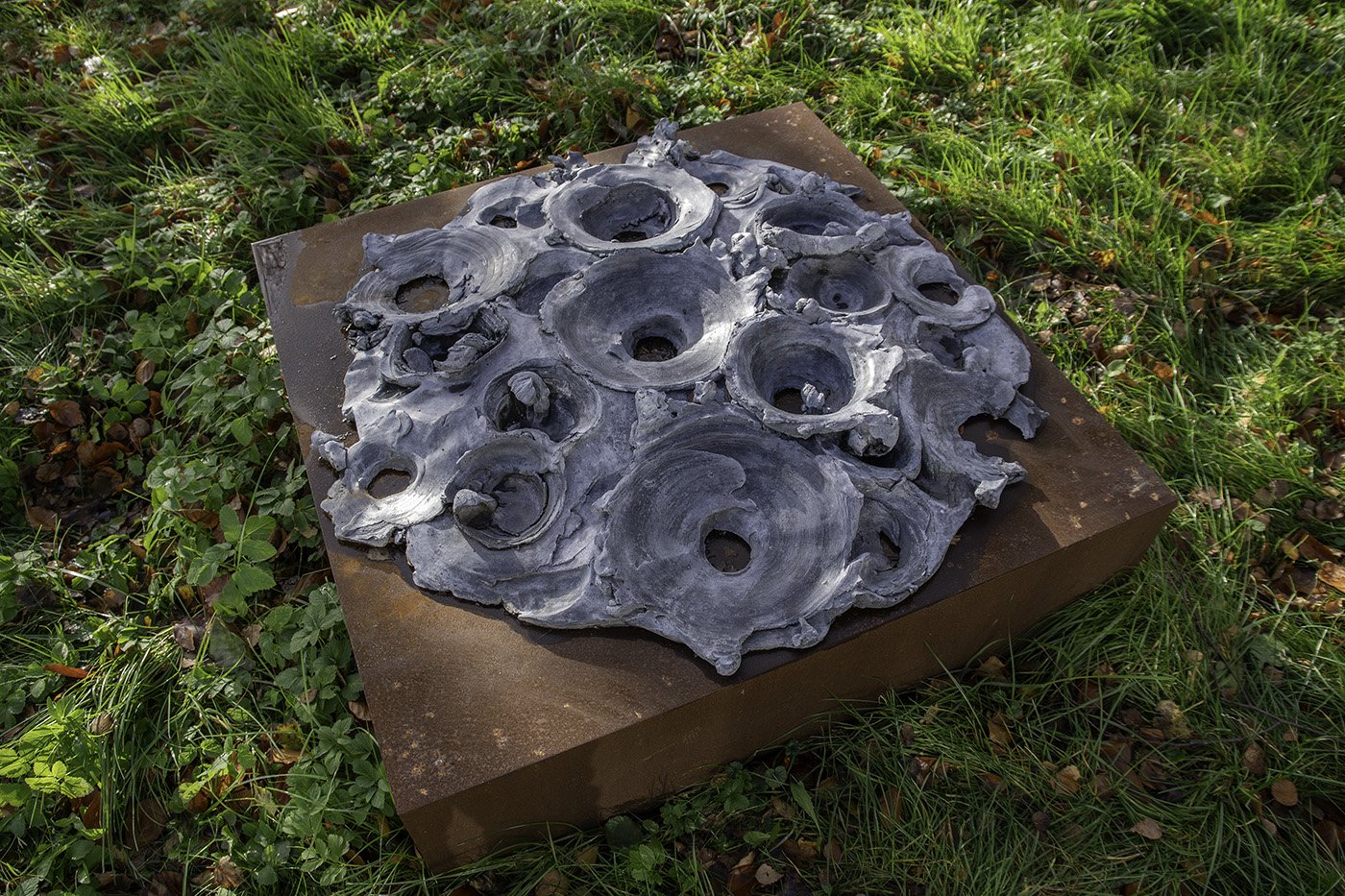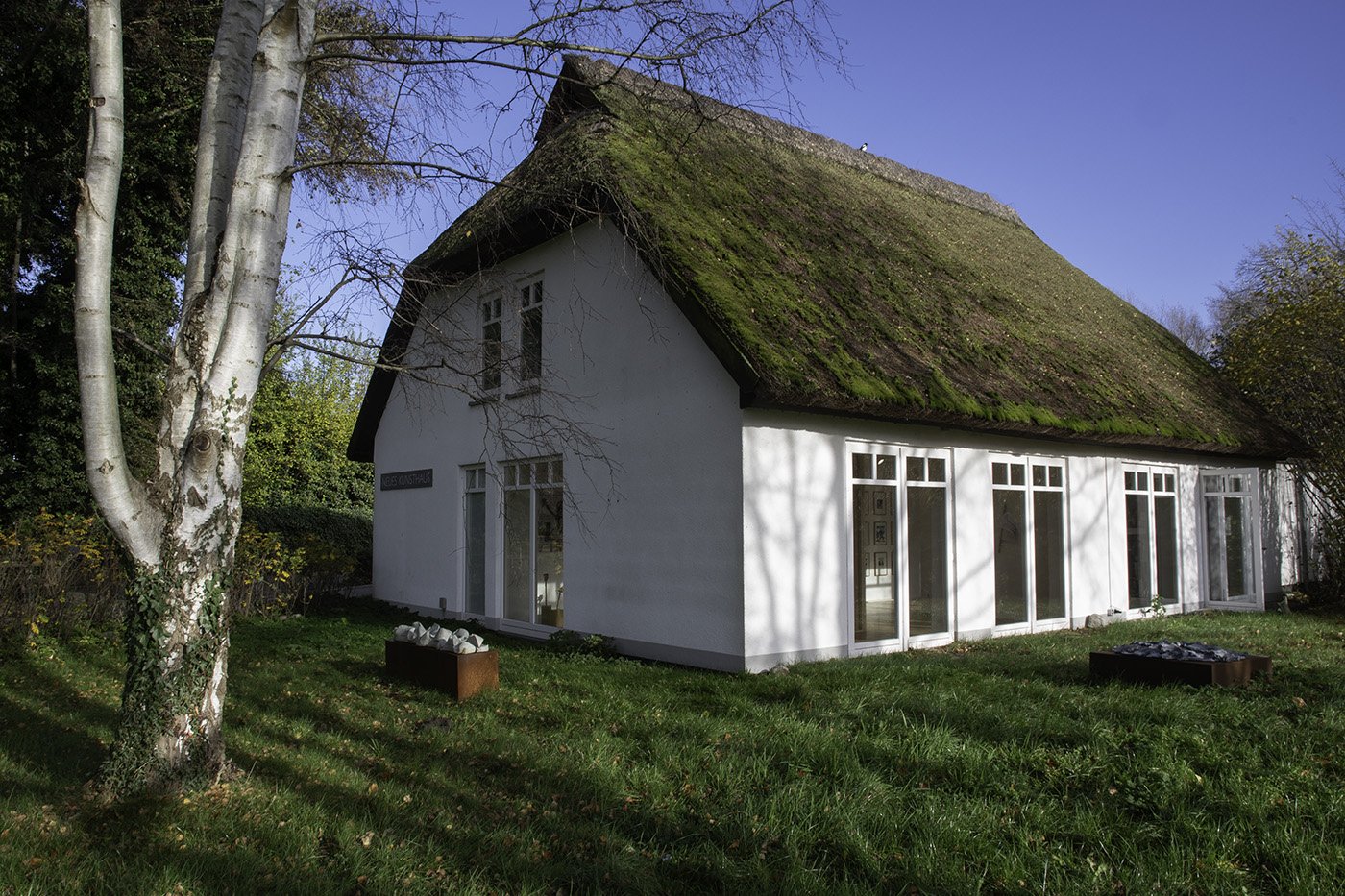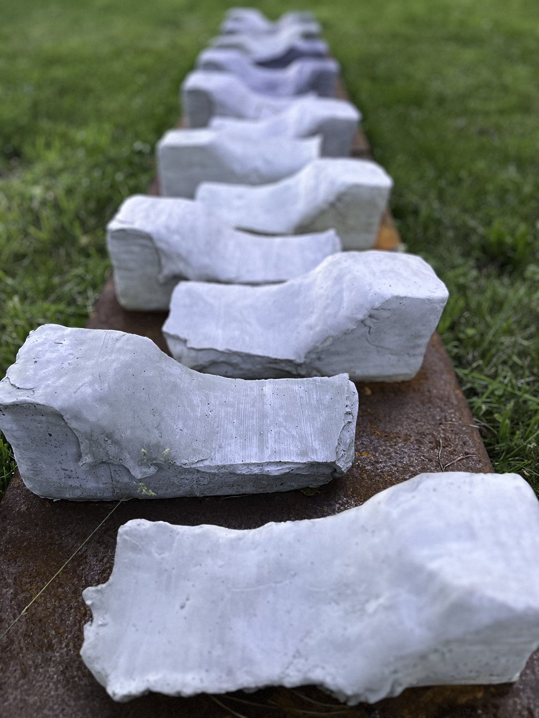 Installation of clay sculptures in the garden of Neues Kunsthaus Ahrenshoop.