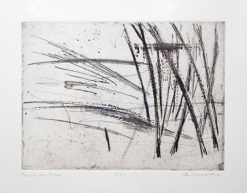 Britta Matthies (1947) first trained as a mechanical drafter, then studied book design and applied graphics in Leipzig. After working at the Landestheater Dessau, she moved to Hohen Viecheln in 1980, where she lives and works today. In addition to landscape depictions, she focuses on still lifes, shadow studies, and perspective cityscapes.