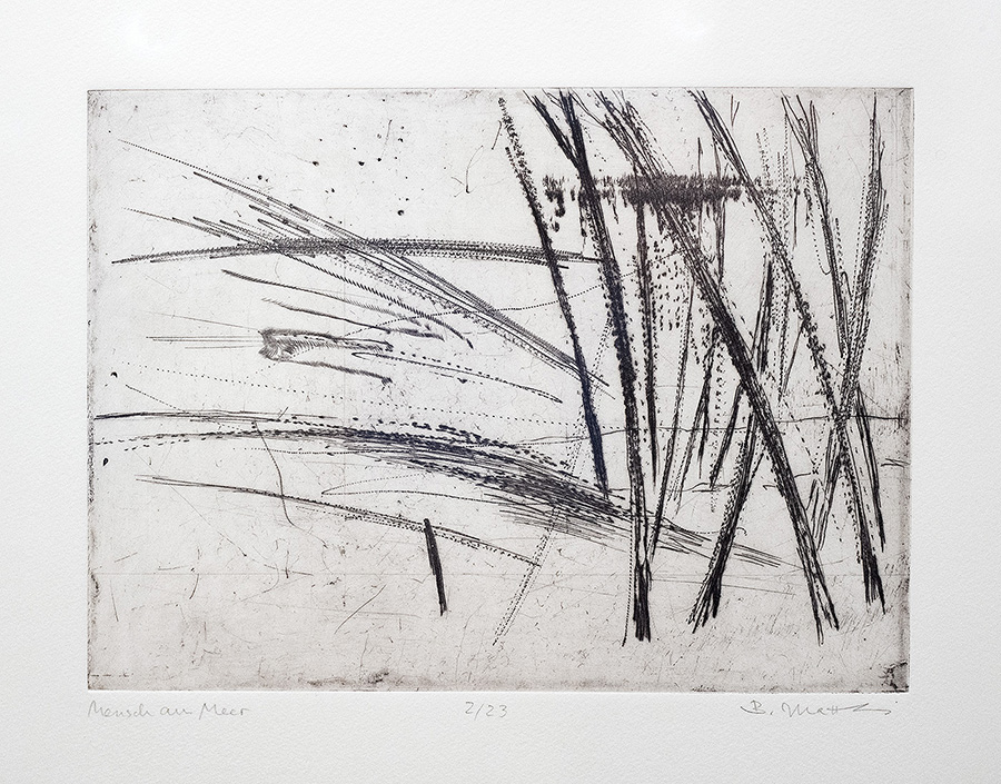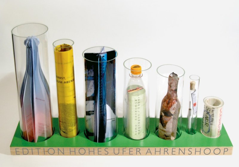 The exhibition is complemented by graphic works in book form, published by EDITION HOHES UFER AHRENSHOOP. The presented book objects are intricate, material-rich collaborations created in very limited editions between 1998 and 2008. They captivate with the diversity of their designs: original prints are arranged into a leporello, stacked into a book box, or gathered in bottle form. Often, literary texts by authors such as Marion Poschmann, Oskar Pastior, or Johann P. Tammen guide the themes, blending graphic art with literature.