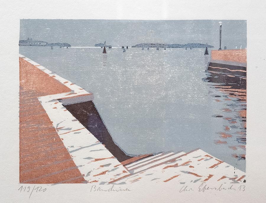 Christine Ebersbach (1954) studied at the Academy of Graphic Arts and Book Arts in Leipzig. She became part of the well-known Ebersbach artist family in 1977 through marriage. Her works focus primarily on landscapes, many of the sketches for her woodcuts were made during her travels through Northern Europe.