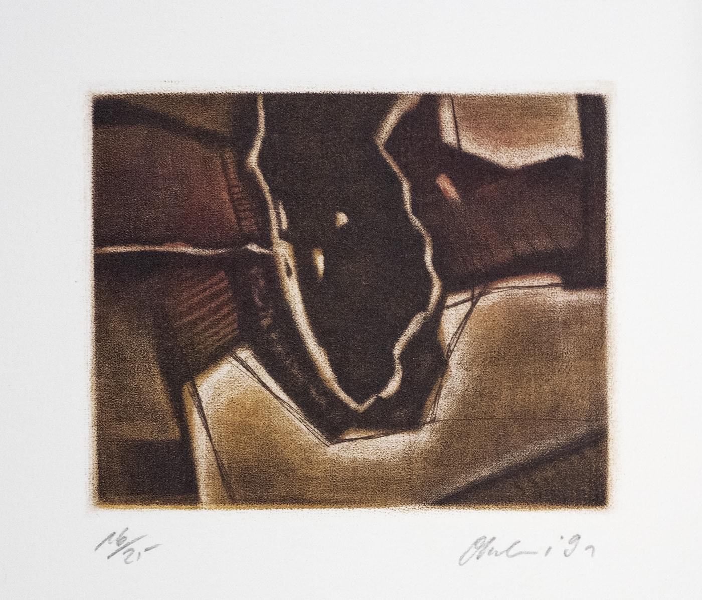 Christian Heinze (1941) studied painting at the HfBK Dresden after a training as a concrete worker. Since the 1960s, he has been a freelance painter and graphic artist in Potsdam, particularly focusing on the complex aquatint technique.